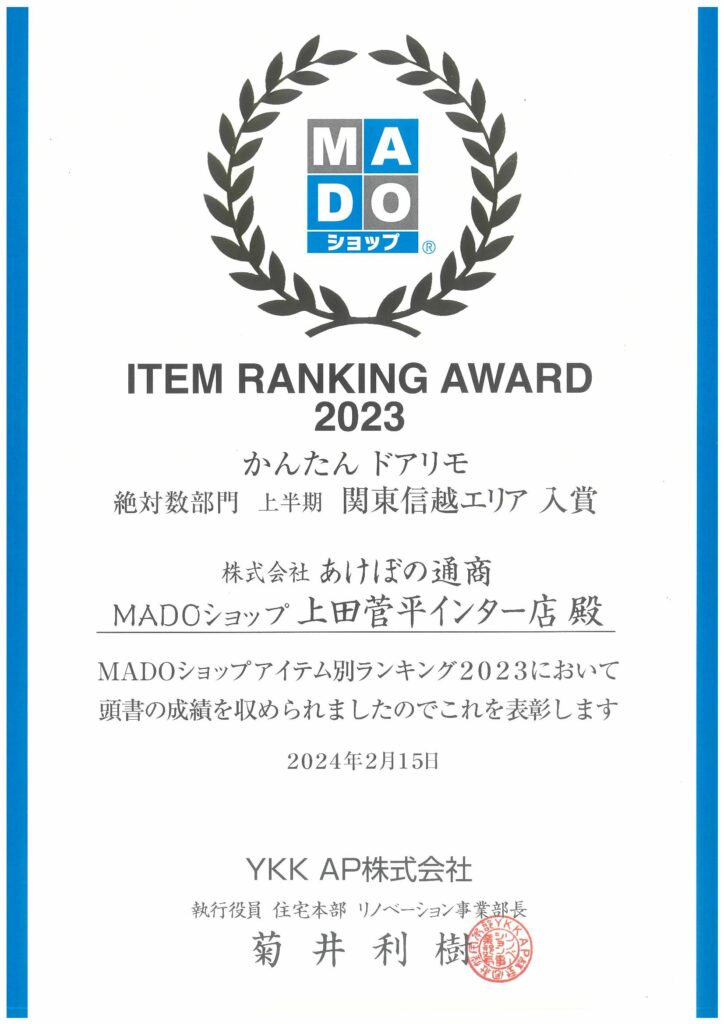 YKK AP ITEM RANKING AWARD2023