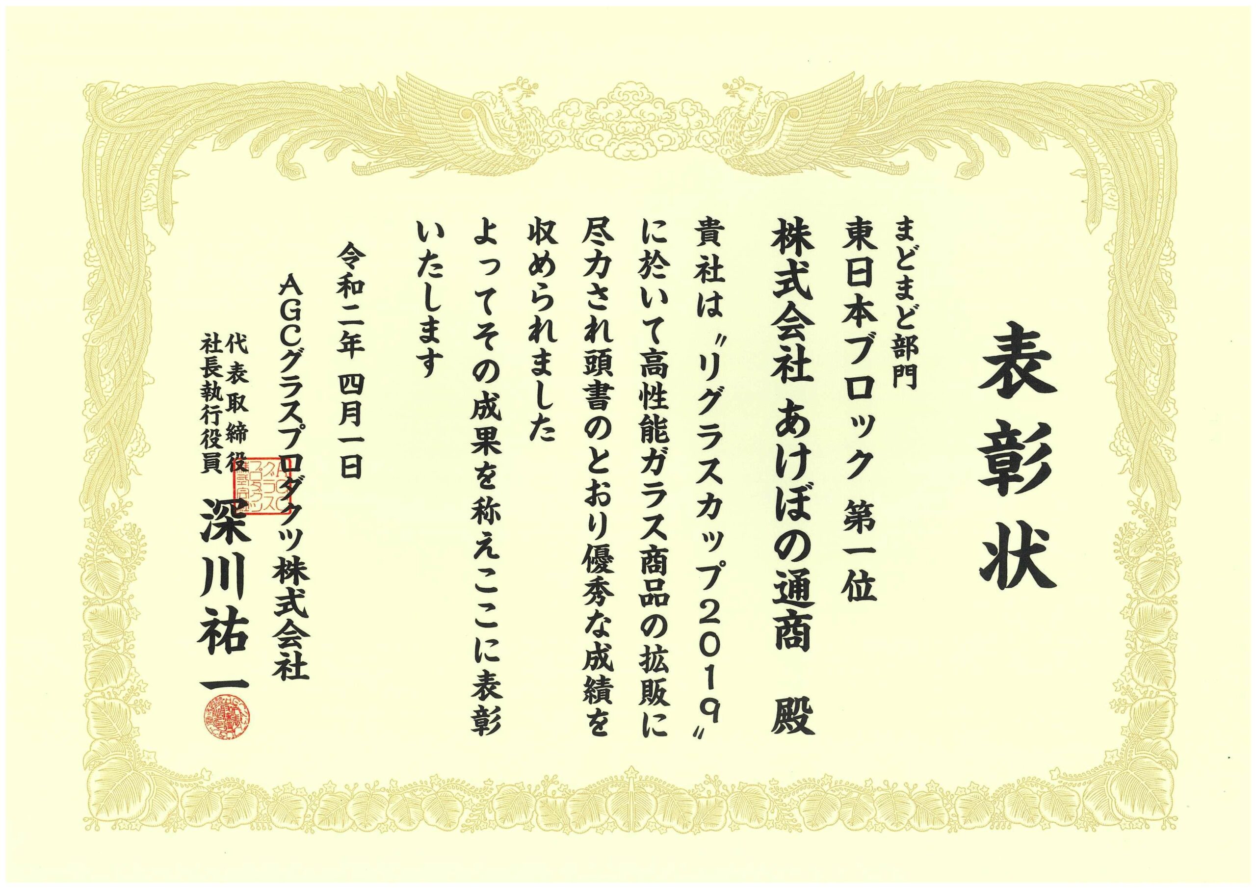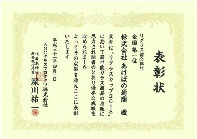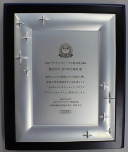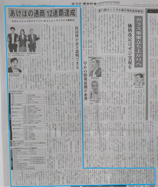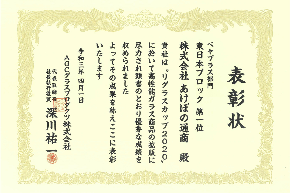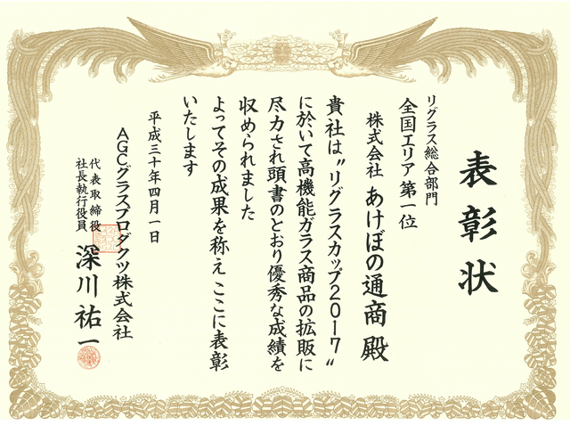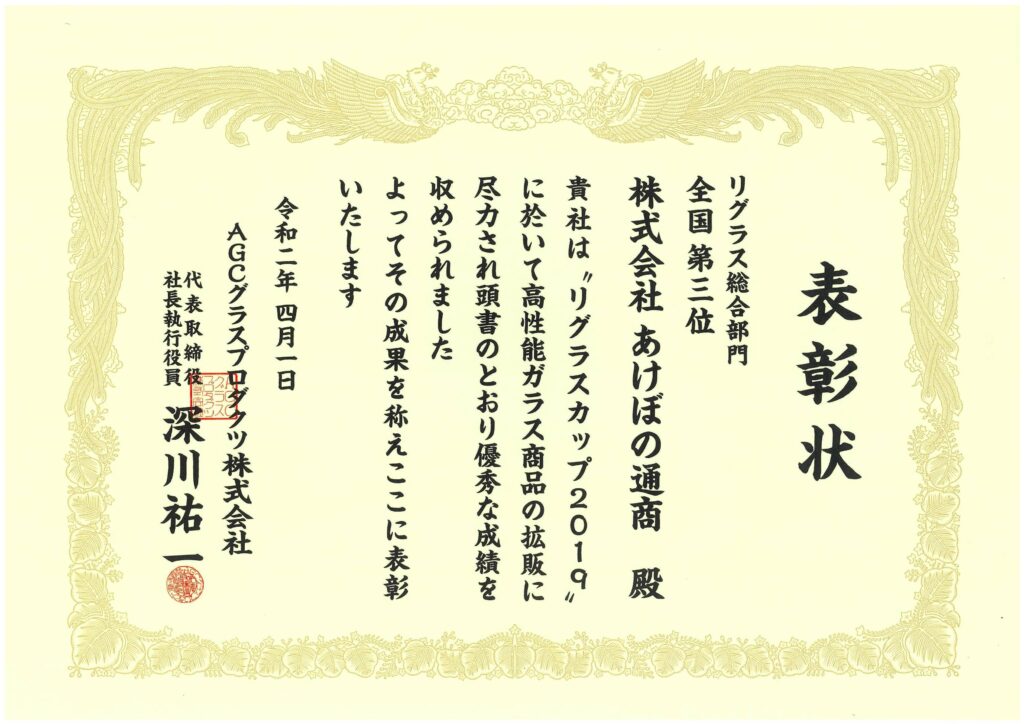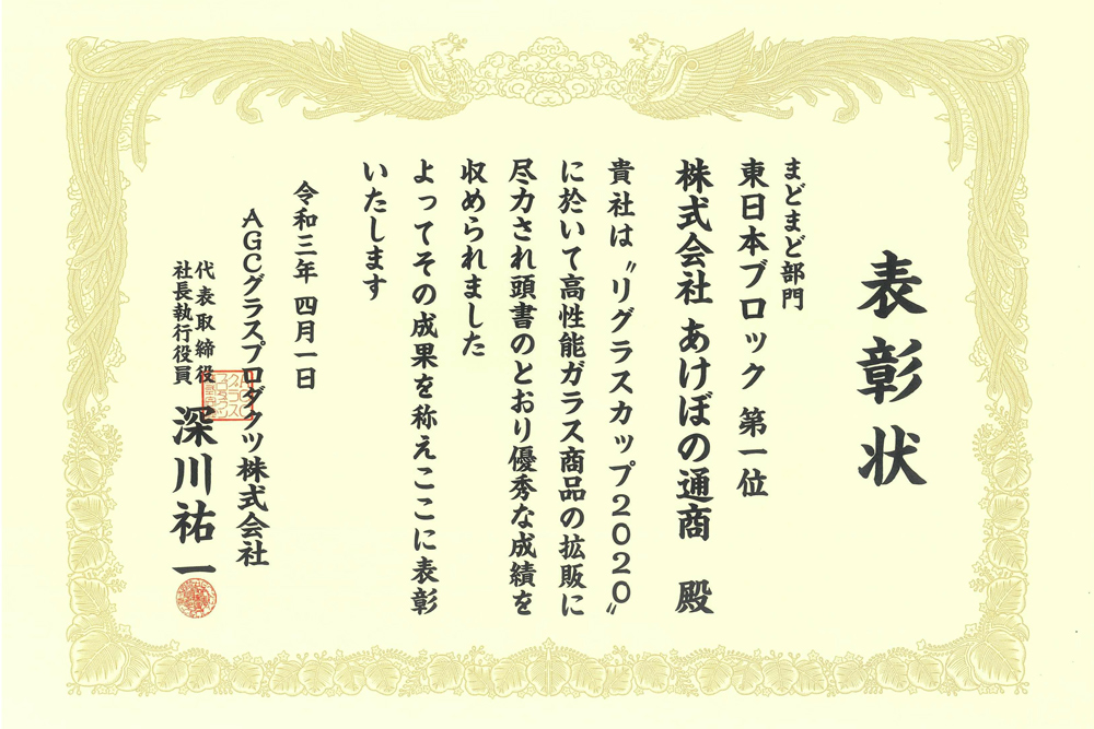 当社は日本板硝子㈱様主催「ガラスグランプリ」(現在は廃止になっています)におきまして13年連続で「金賞(第一位)」の成績を残すことができました。