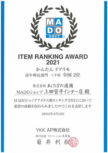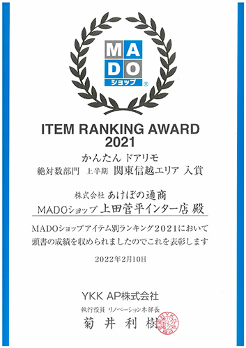 YKK AP ITEM RANKING AWARD2021