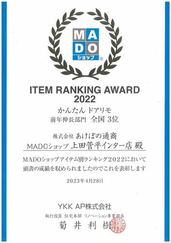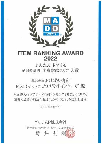 YKK AP ITEM RANKING AWARD2022