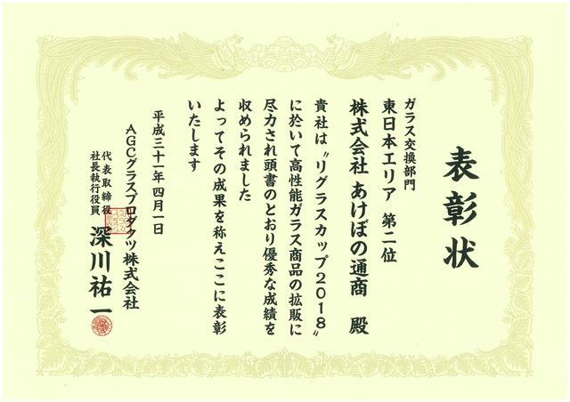 ★ガラス交換部門 東日本エリア「第2位」