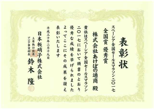 2018年2月20日、日本板硝子様主催の「スペーシア全国セールスマラソン2017」の表彰式が行われました。