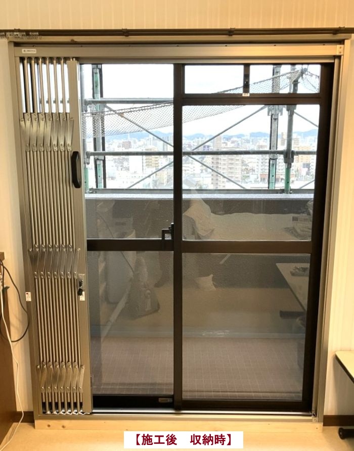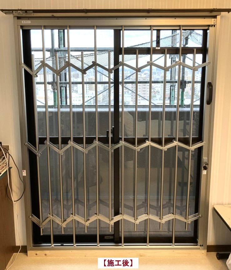 防犯意識の高さから、マンションの掃き出し窓に室内側防犯格子『あんみつガード』をお取り付けのお客様。