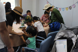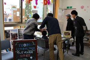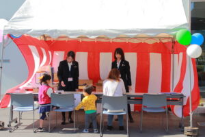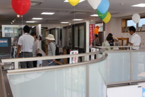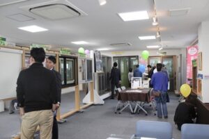 ショールームにて実際に商品を体感していただいたり、今回も多くの企業様にご協力をいただき、3Fには木を使用してペンダントやキーホルダー作り、初登場の射的など楽しいイベントブースができました。また、毎回大好評のワンコイン(500円)での網戸張り替えも多くの方にご利用いただきました。