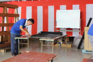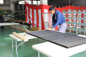 毎回行っているワンコイン(500円)での網戸張替も大好評で過去最高となる枚数をお持ちいただき、待ち時間が長くなってしまう時間帯もあり、ご迷惑をお掛けしてしまいました。誠に申し訳ございませんでした。今回も沢山の企業の皆様にもご協力いただきました。ありがとうございました。今後も日頃の感謝をこめて地域の皆様に少しでも喜んでいただけるイベントを行っていきますので、末永くよろしくお願いいたします。
