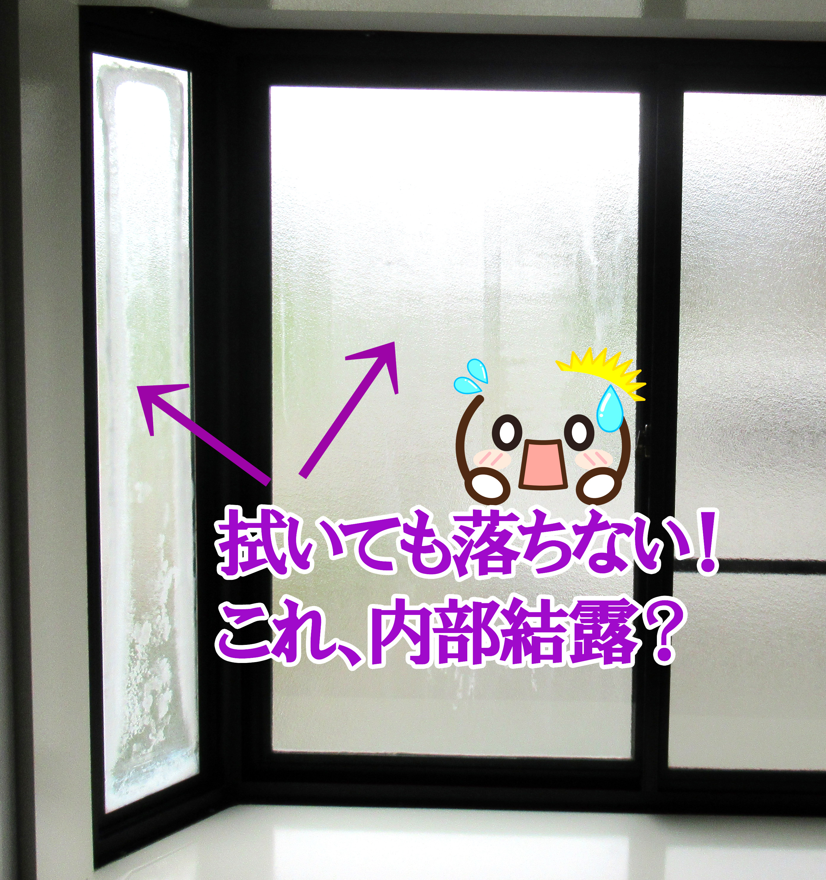 内部結露を放置すると、中の湿気でガラスの透明度が下がり、見た目が悪くなるだけでなく、中空層に溜まった水が寒い季節に凍ってガラスが割れてしまうことも Σ(゚Д゚)