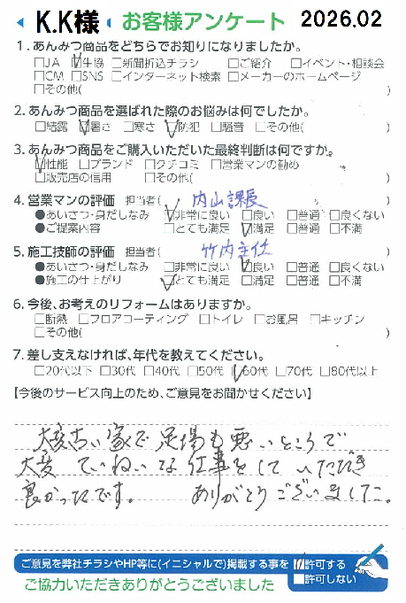 大変古い家で足場も悪いところで大変ていねいな仕事をしていただき良かったです。ありがとうございました。