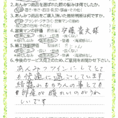 展示会にご来場いただいたお客様、結露でお悩みということで「あんみつガラス」をご提案し、ご購入いただきました。お褒めの言葉とてもうれしいです。価格のことについてもご意見をいただきましてありがとうございます。